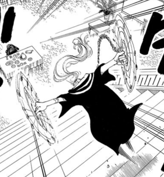 【技の概要】 〝孔雀一連スラッシャー〟の派生技。攻撃の際に長く伸びたスラッシャーを後方に引き戻す事で、相手の背後からの意表を突いた斬撃を繰り出す技。アラバスタの時計台にて、Mr.7およびミス・ファーザーズデイとの戦いで使用。しゃがむ事で〝孔雀一連スラッシャー〟を回避した2人が反撃に転じる隙を突いた一撃を浴びせ、時計台から叩き落し撃破した。 |