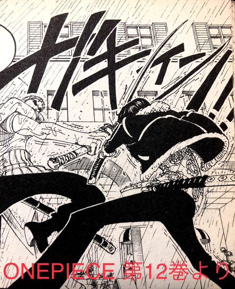すれ違い様に、そして真空波の様な斬撃で何度も斬りつける辺り、ミホークの"この剣を越えてみよ!!"に近いものがある。